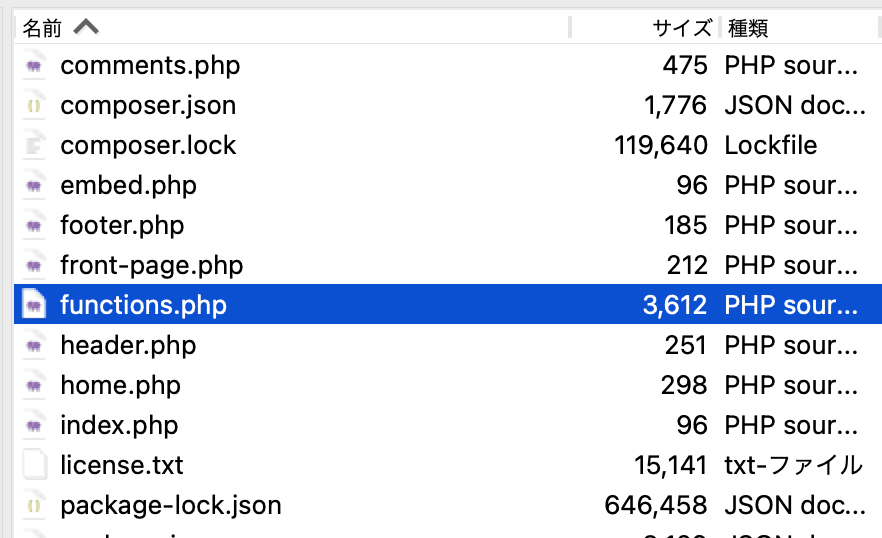 FTPで上記で編集したfunction.phpファイルを上書き保存