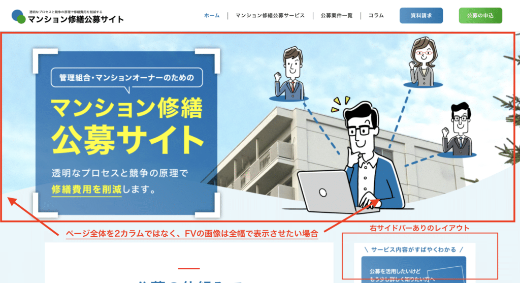 最近よくある案件で、レイアウトは2カラム指定のご依頼なんだけど